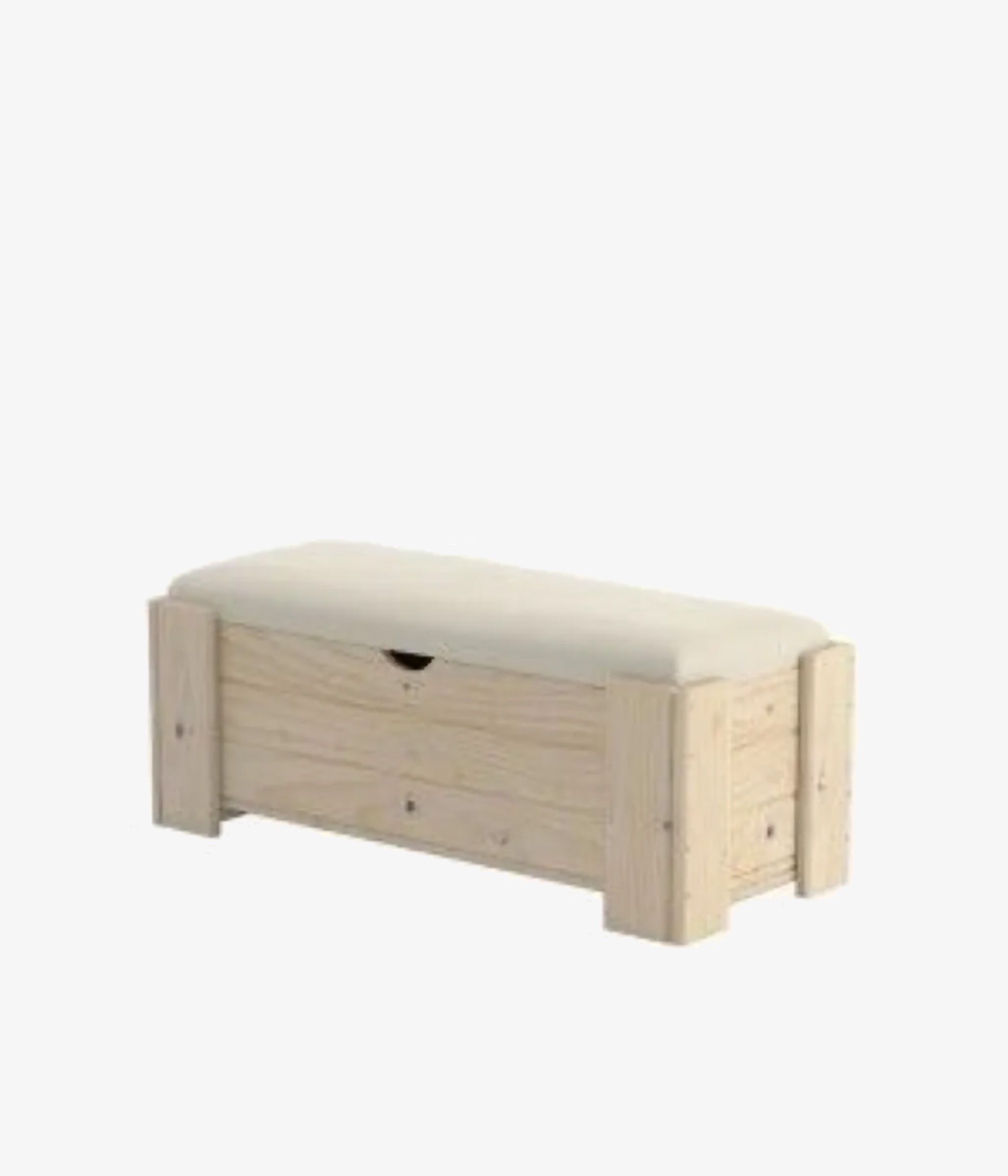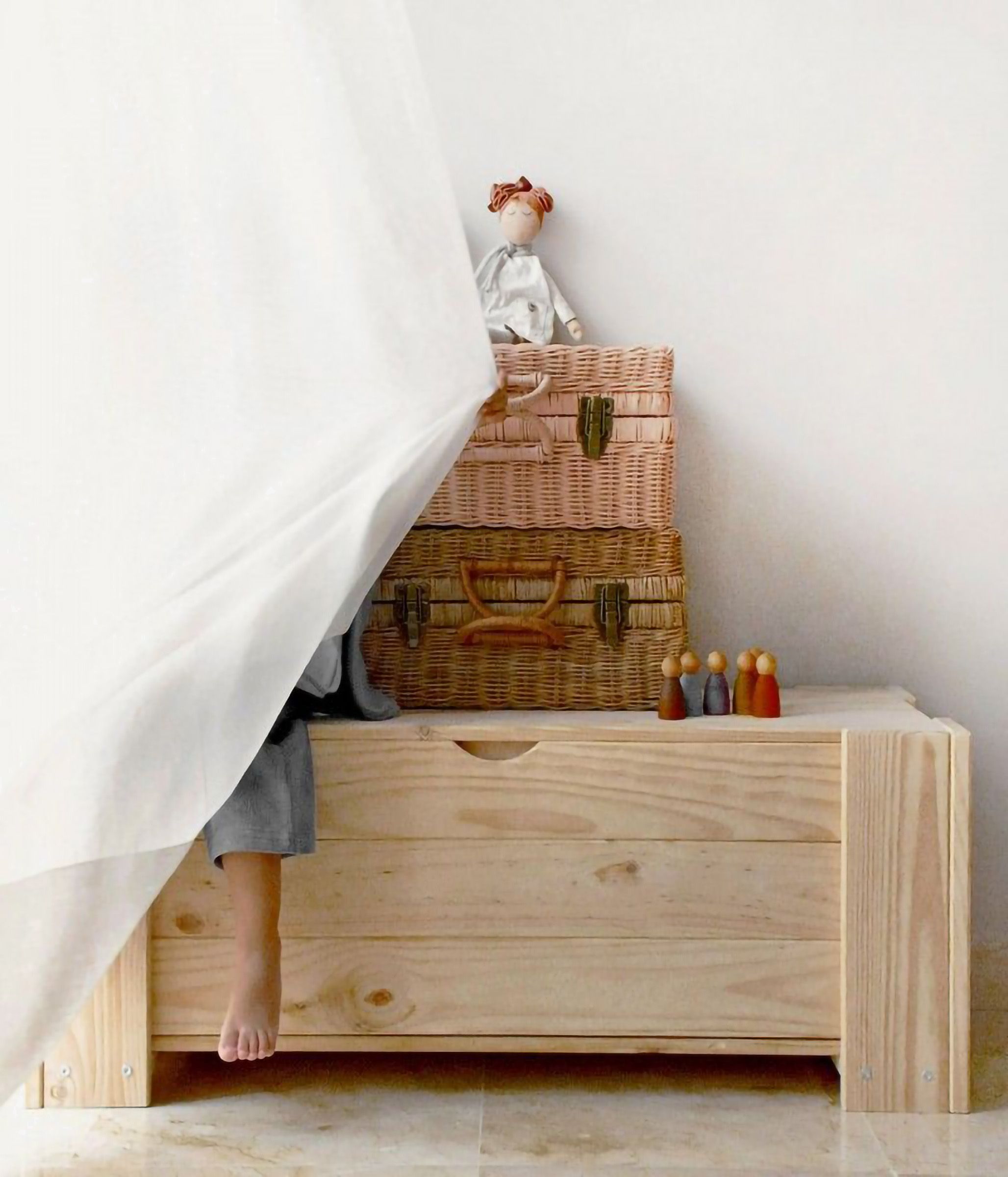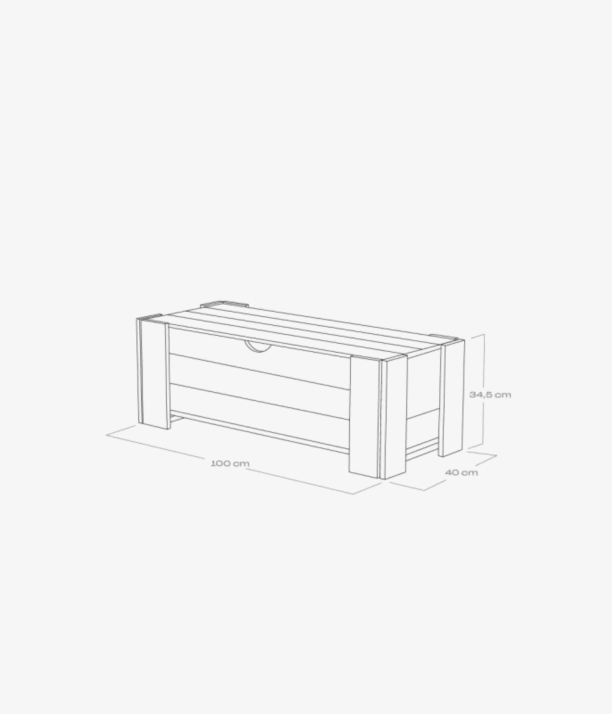 Esta baúl de 100 cm de ancho está fabricado en madera maciza de pino proveniente de plantaciones sostenibles del País Vasco.