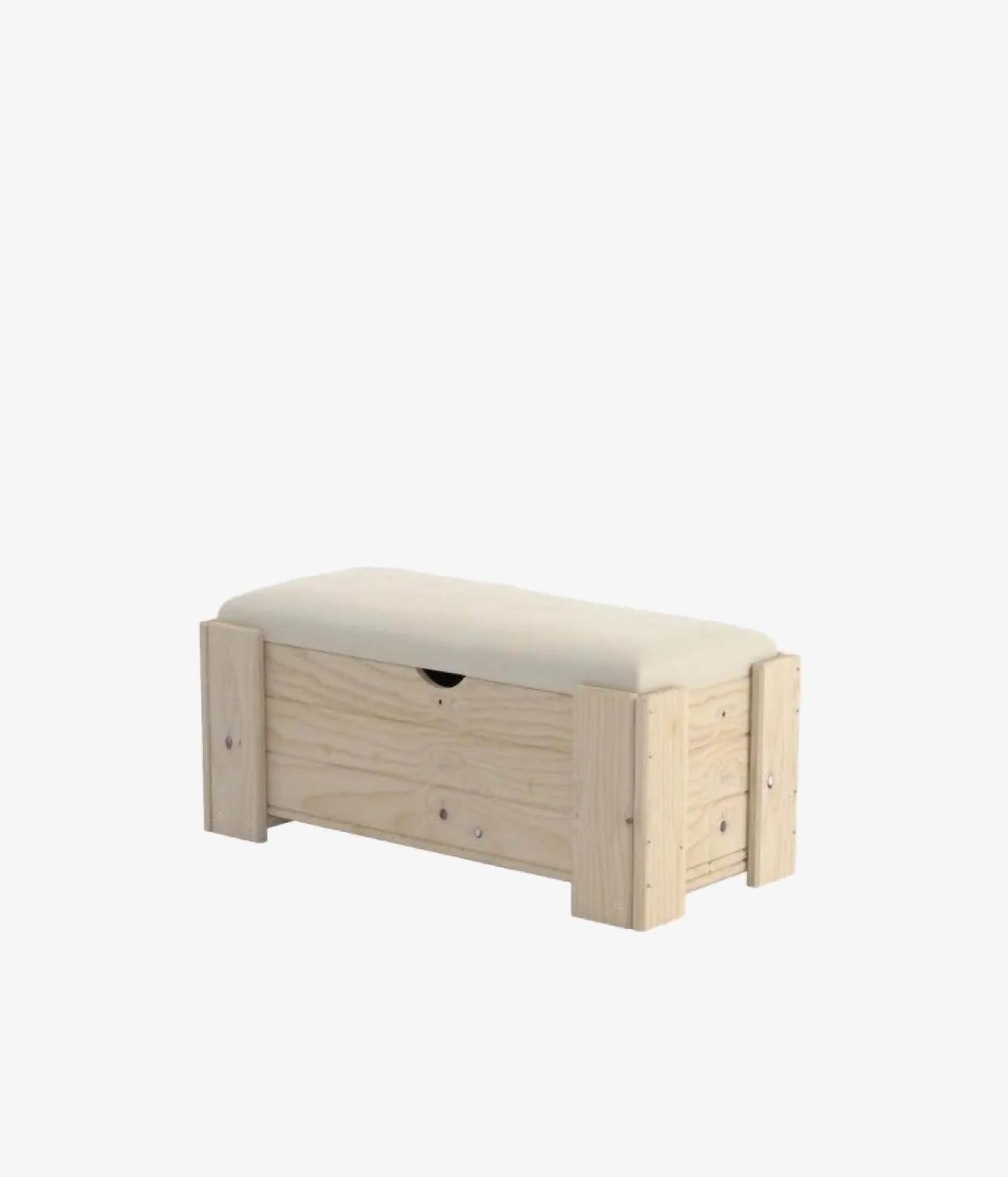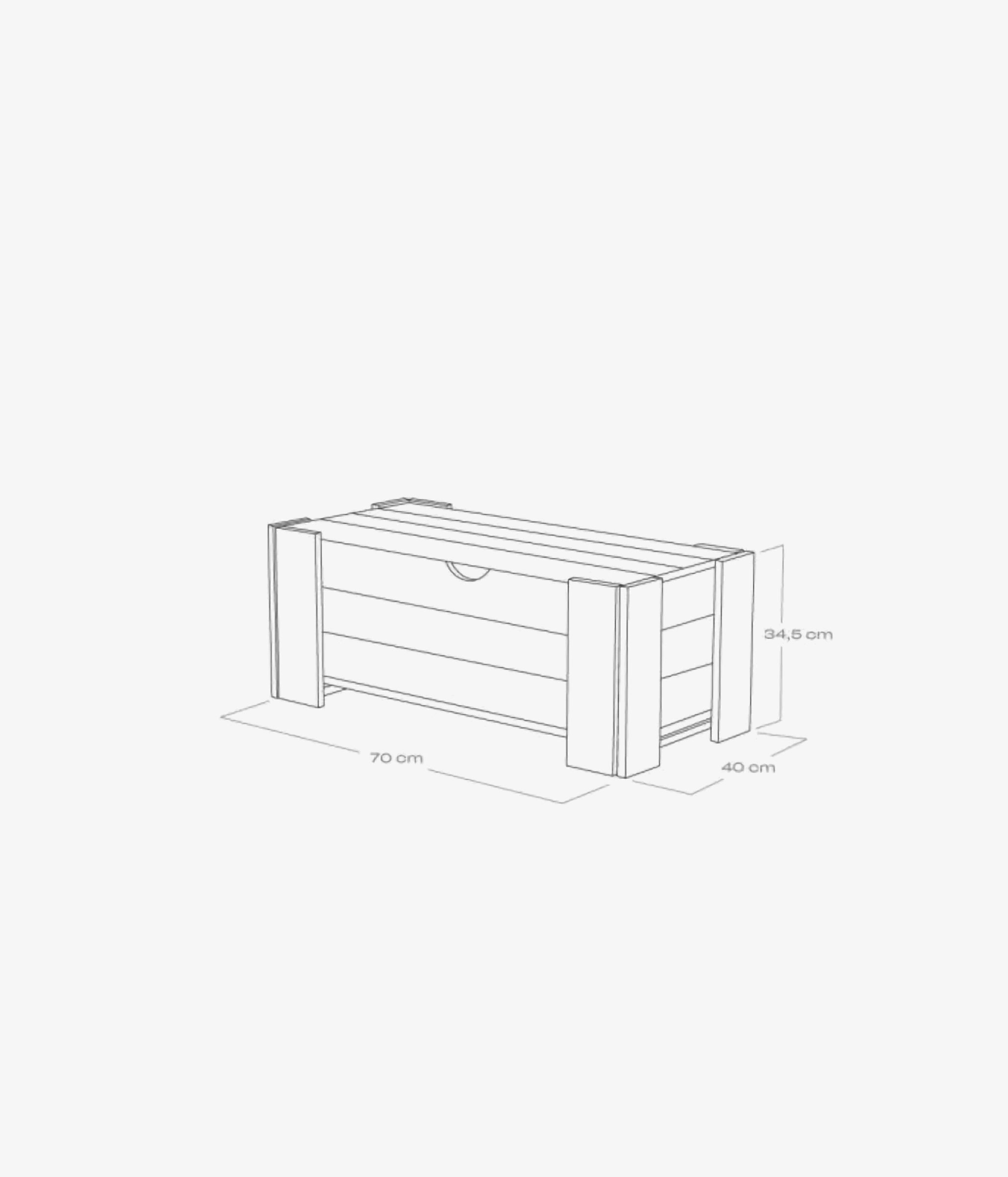 Esta baúl está fabricado en madera maciza de pino proveniente de plantaciones sostenibles del País Vasco.