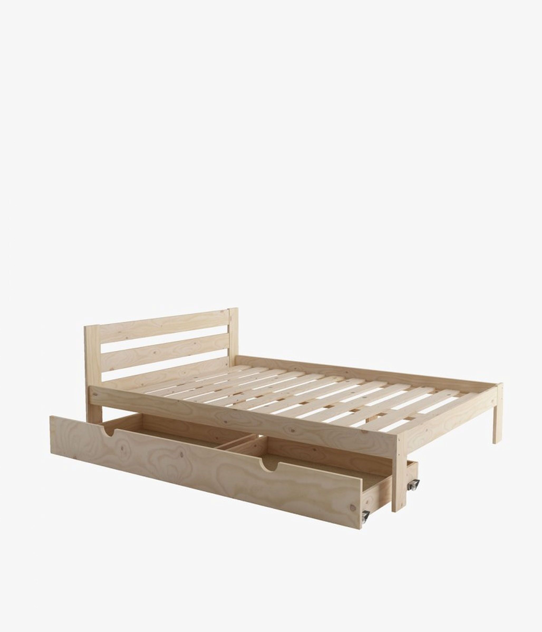 Los acabados con los que se comercializa esta cama son madera pulida y barniz natural. Incluye un cajón extraíbles que se encaja debajo del somier.