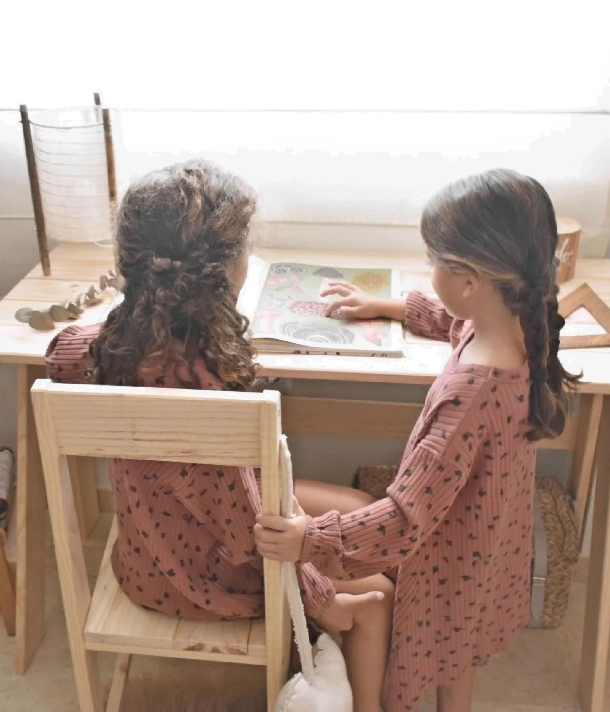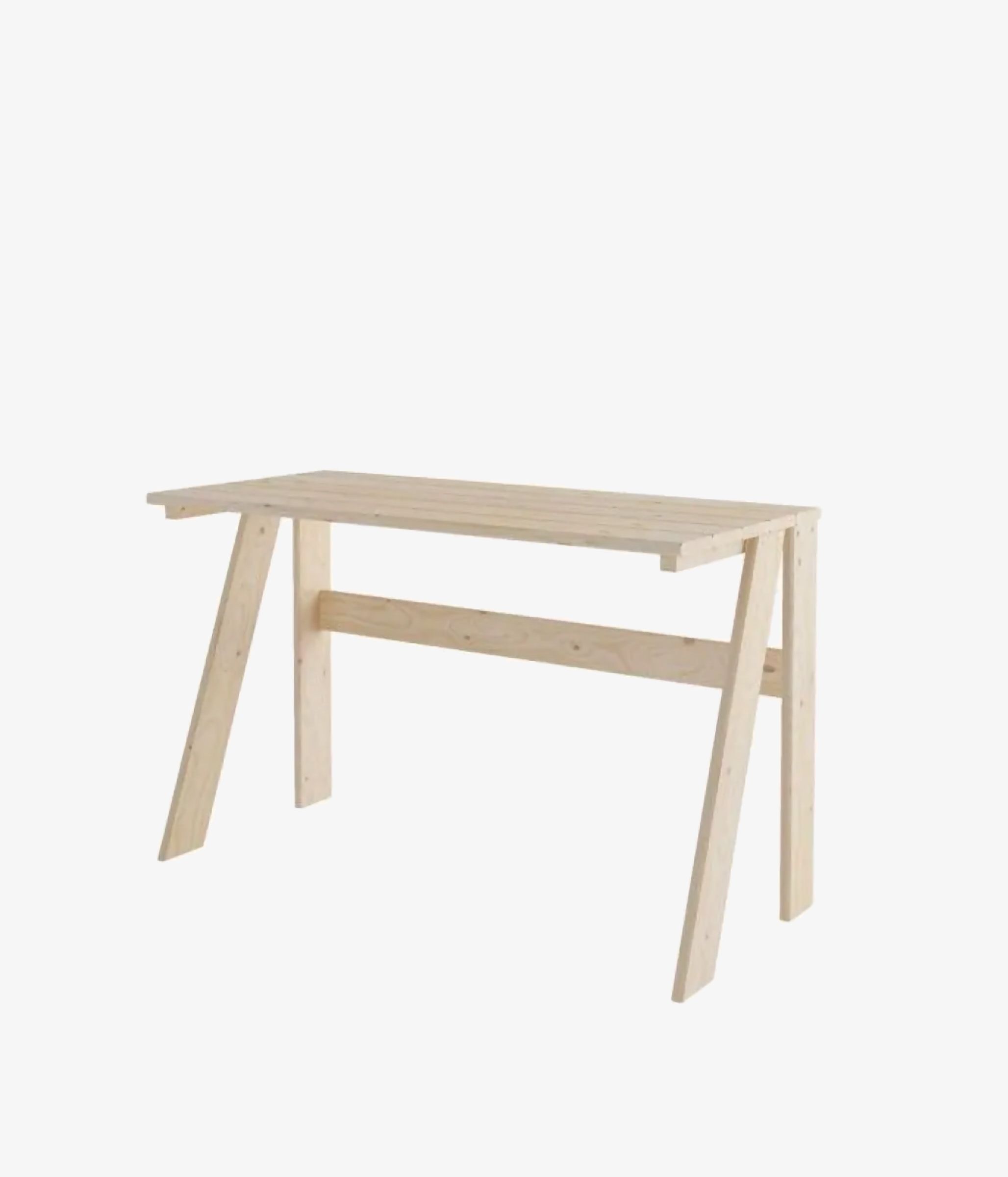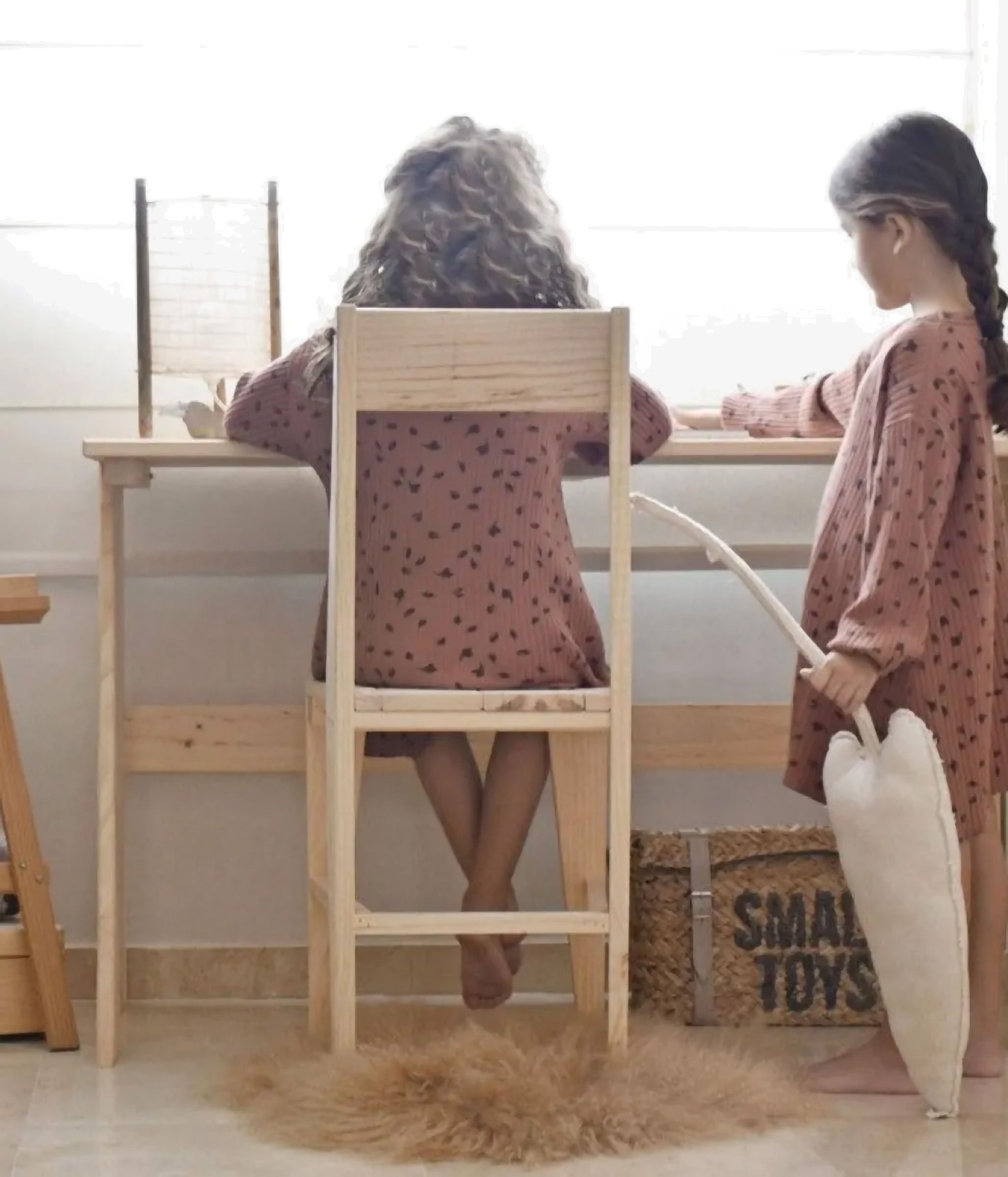 Conjunto de mesa de estudio de 120 cm y silla fabricados en madera maciza de pino proveniente de plantaciones sostenibles.