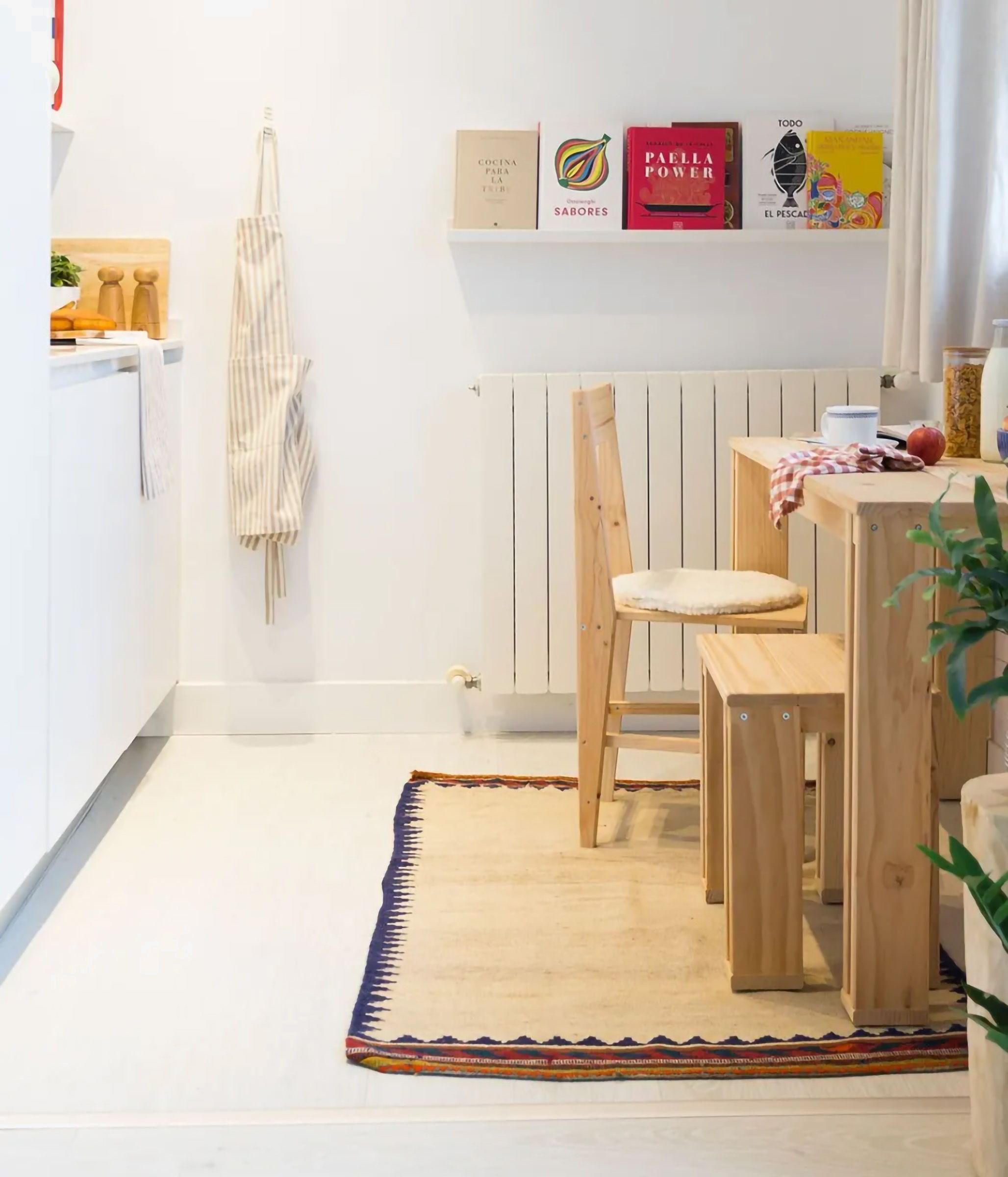 Mesa de comedor de tamaño pequeño fabricada en madera maciza.