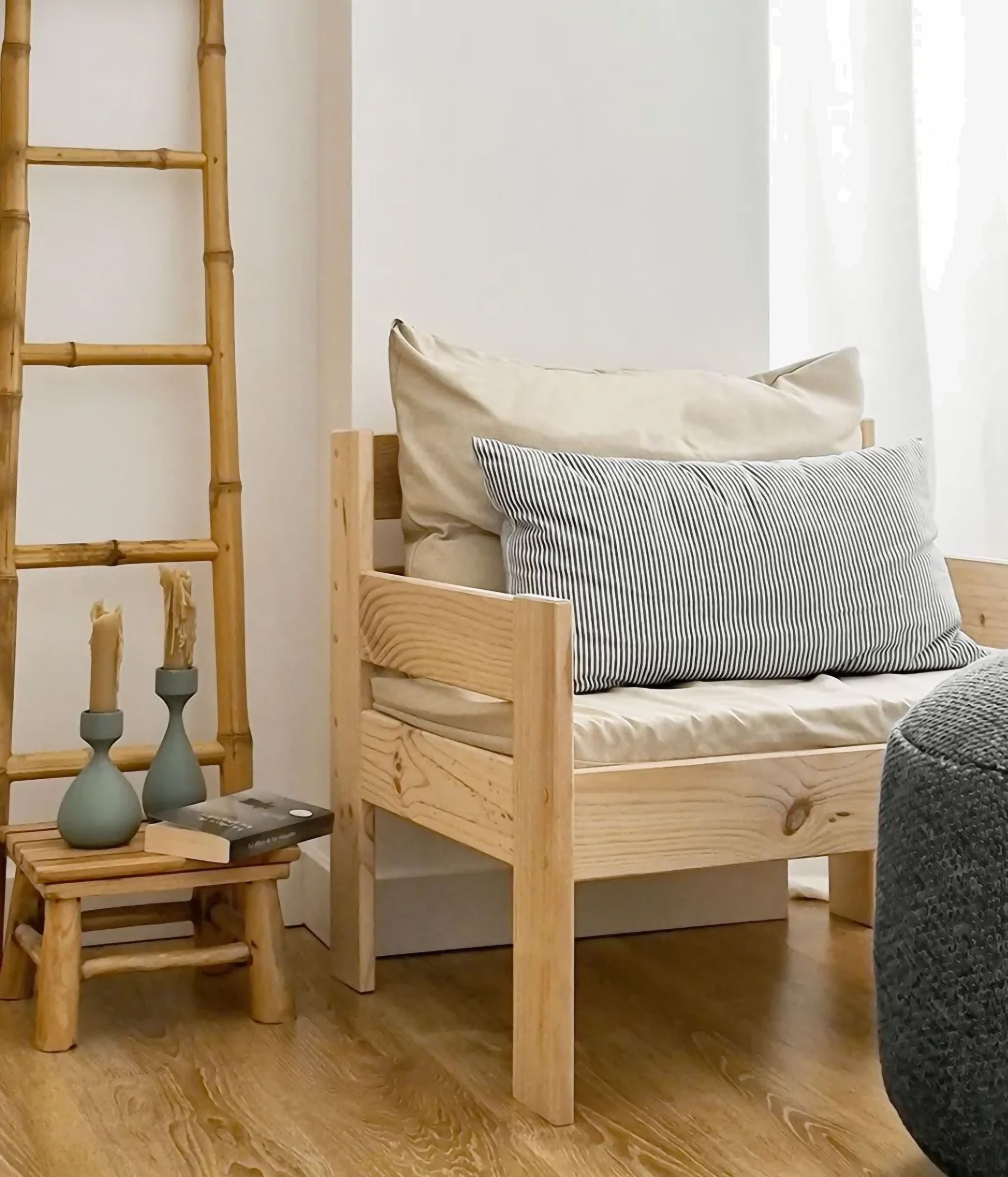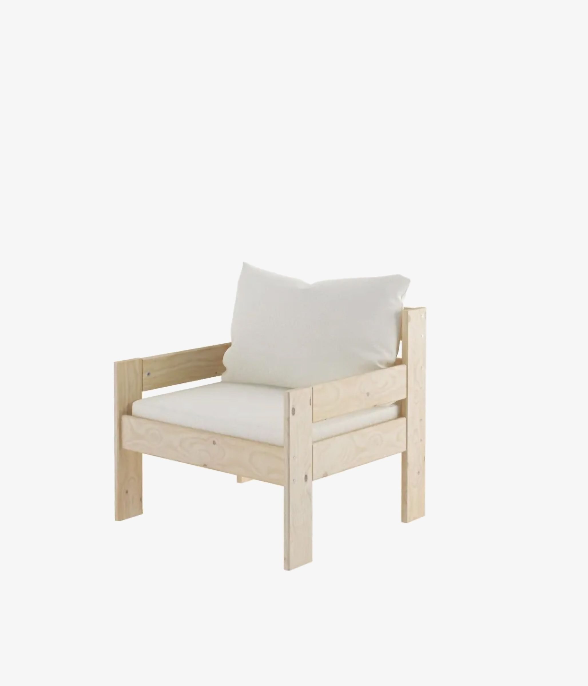 Sillón modular con brazos fabricado en madera maciza de pino proveniente de plantaciones sostenibles del País Vasco.
