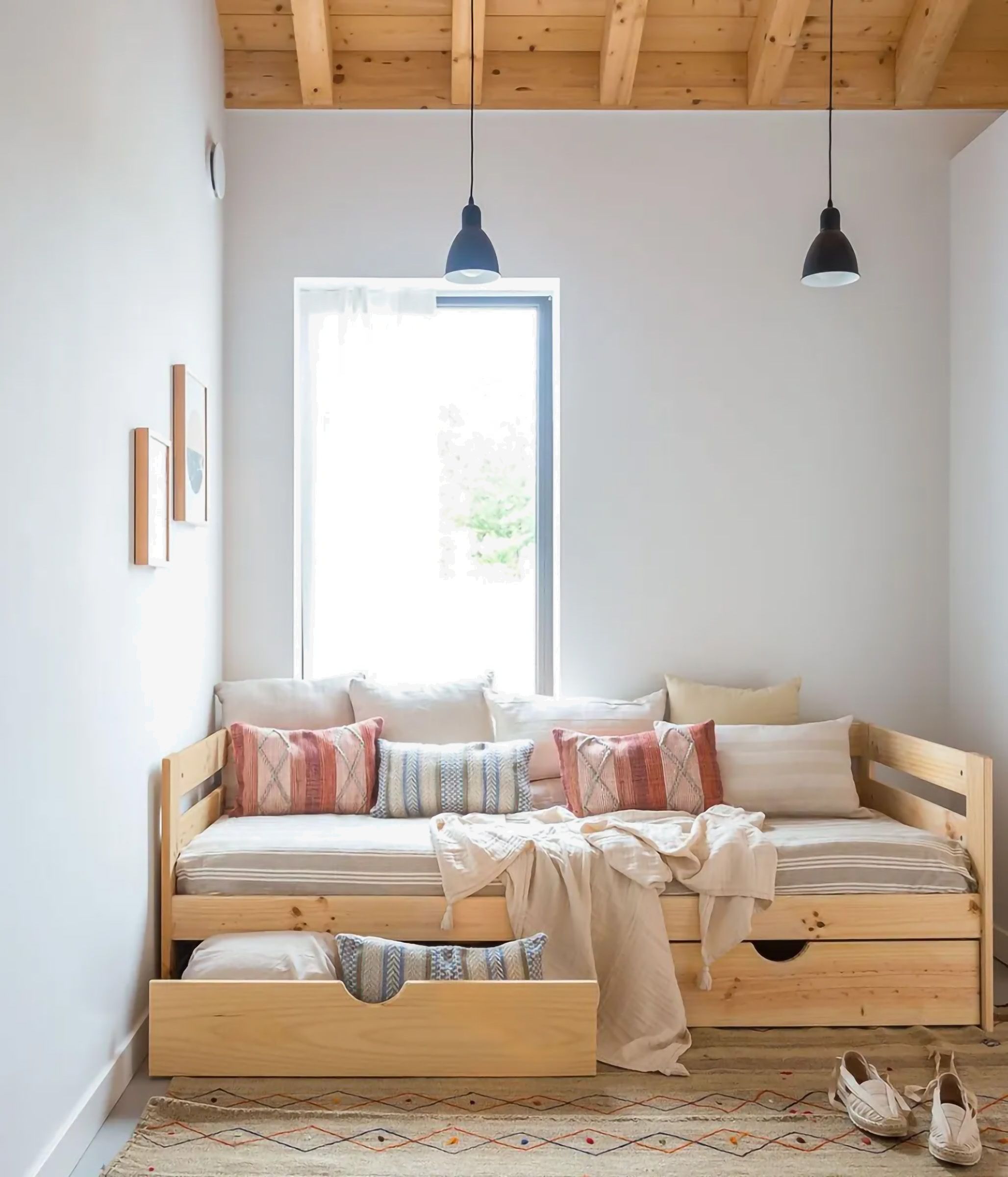 Este modelo se comercializa en acabado de madera pulida, barniz natural o blanco nórdico.